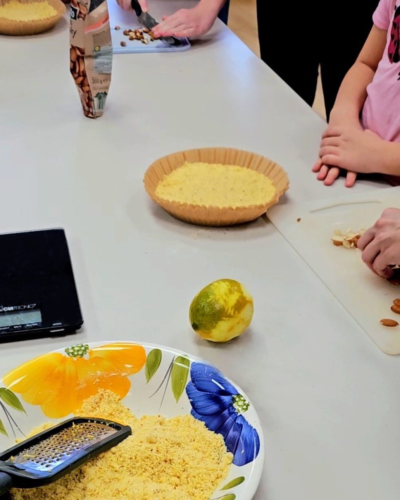 Podczas świątecznych przygotowań, które odbyły się 6 grudnia, pomagałam w przeprowadzeniu dwóch warsztatów kreatywnych w Łokietku. Razem z Maćkiem rozpoczęliśmy dzień od warsztatów kulinarnych poświęconych sbrisolonie, tradycyjnemu włoskiemu ciastu. Jest ono przygotowywane z bardzo prostych składników, ale ma naprawdę bogaty smak. Była to miła okazja, aby podzielić się kawałkiem włoskiej kuchni w miłej, świątecznej atmosferze.